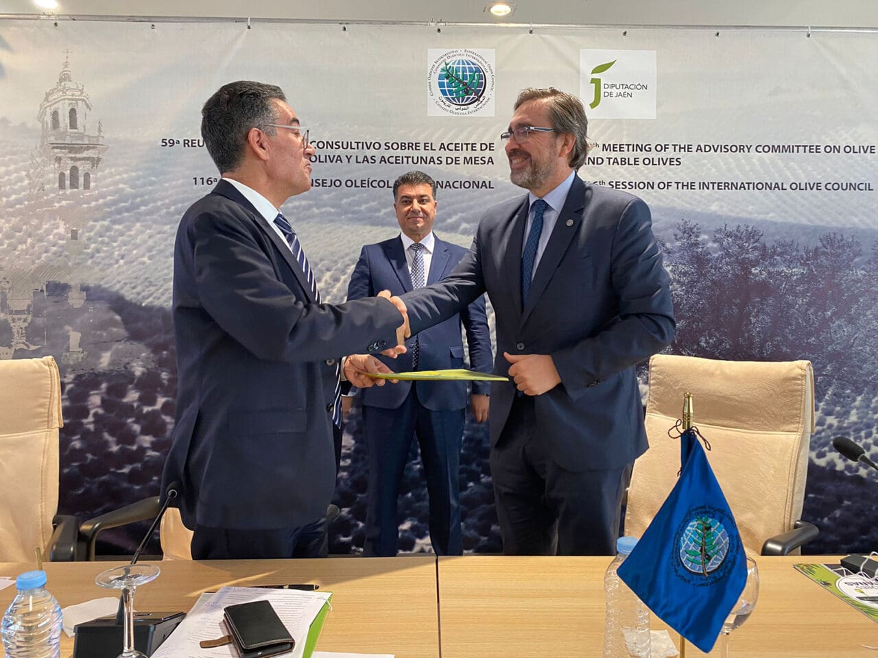 El rector de la Universidad de Jaén (UJA), Juan Gómez Ortega, y el director ejecutivo del Consejo Oleícola Internacional (COI), Abdellatif Ghedira, han firmado este miércoles, en el marco de la celebración de la 116ª Sesión Plenaria del Consejo de Miembros que el COI celebra en Jaén, un acuerdo específico para la elaboración, por parte del Instituto de Investigación en Olivar y Aceites de Oliva (INOU) de la UJA, de una página web con información relativa a olivar y sostenibilidad.
