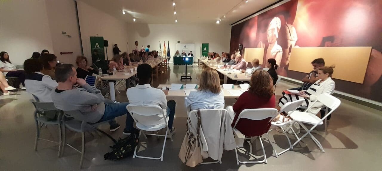 El delegado del Gobierno de la Junta de Andalucía, Jesús Estrella, ha presidido la reunión del Foro Provincial para la Integración de Personas de Origen Migrante en la provincia de Jaén. Junto a él, la delegada de Inclusión Social, Juventud, Familias e Igualdad, Ángela Hidalgo, y el vicepresidente de este foro y presidente de Cáritas Diocesana, Rafael Ramos.