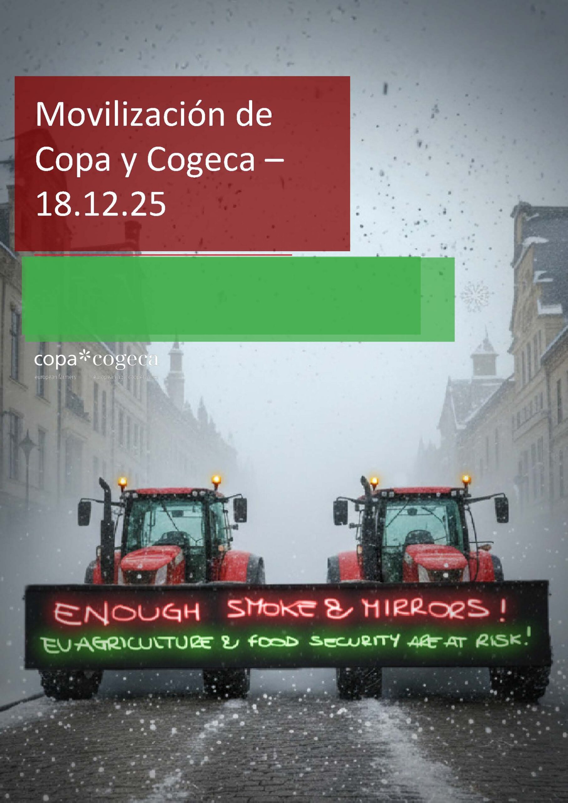 Cooperativas Agro-alimentarias de Andalucía respalda la manifestación convocada por el COPA-COGECA para este jueves, 18 de diciembre, en Bruselas, coincidiendo con la celebración del Consejo Europeo, para reclamar una Política Agraria Común (PAC) más justa, con un presupuesto fuerte, capaz de garantizar la soberanía alimentaria y separada del resto de políticas comunitarias; así como un Marco Financiero Plurianual acorde con los retos del sector.