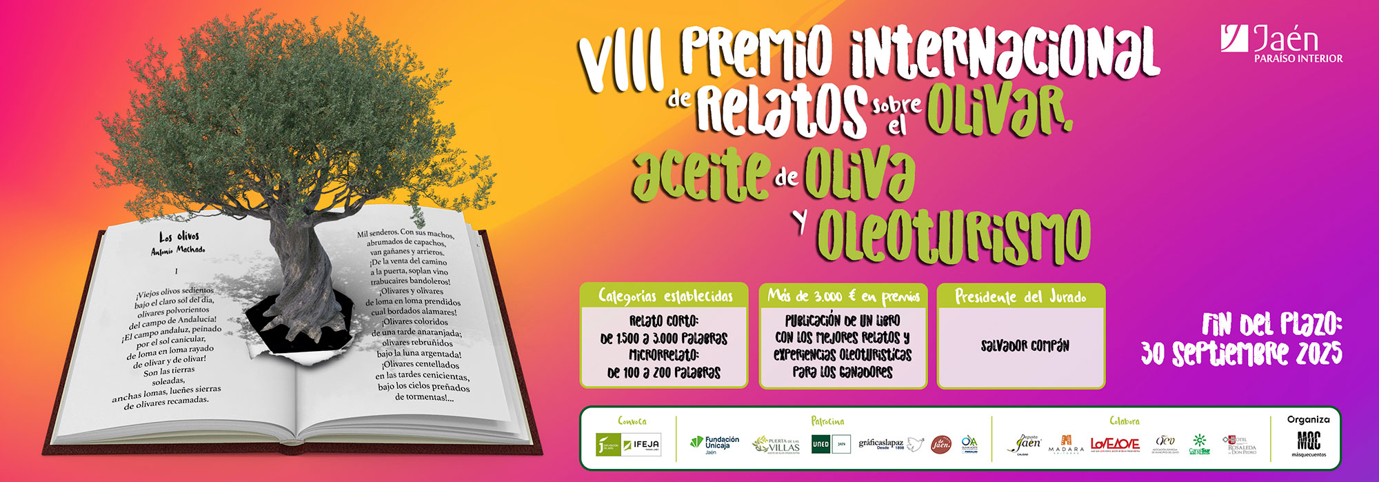 El Premio Internacional de Relatos sobre Olivar, Aceite de Oliva y Oleoturismo ha dado en su octava edición un salto cuantitativo espectacular, ya que ha pulverizado todos sus récord de participación. Este certamen que convoca Ferias Jaén y organiza la Asociación Cultural Másquecuentos (MQC) ha crecido de manera exponencial este año en los que respecta al número de relatos cortos y microrrelatos recibidos, ya que se han superado los 420 registrados, lo que pulveriza el anterior récord, que estaba en 329 desde la sexta edición. El número de textos enviados para aspirar a hacerse con alguno de los galardones establecidos en este concurso literario no es el único parámetro en el que se han producido cifras históricas, ya que también se ha batido la marca de países participantes (21 este año) y el de provincias españolas de procedencia (41).