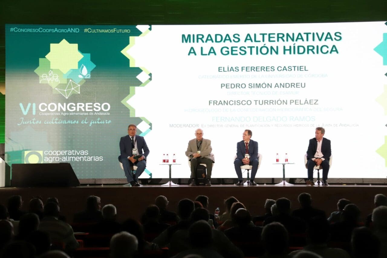 El VI Congreso de Cooperativas Agro-alimentarias de Andalucía ha retomado la segunda parte de la jornada con el foco puesto en los retos frente a la falta de agua y en las alternativas disponibles para garantizar que el recurso llegue a las explotaciones agrícolas y ganaderas.